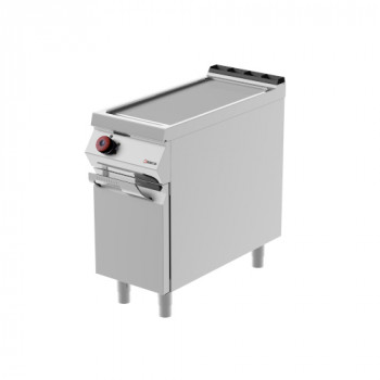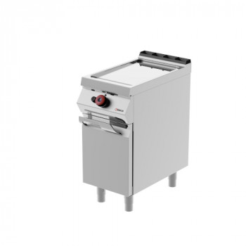 Egylapos elektromos rostlap, csuklós ajtóval. Sima felületű, lágyacél főzési felület.